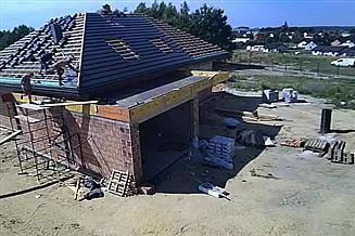 Dom przeznaczony jest dla 4-5 osobowej rodziny. Do końca nie było pewne czy uda się nałożyc tynk ze względu na pogodę bo pierwszy śnieg w tym roku był dość wcześnie a w nocy łapie już lekki mróz jednak udało się trafić. Realizacja projektu domu Maja 3 z Pracowni Architektonicznej MG Projekt.